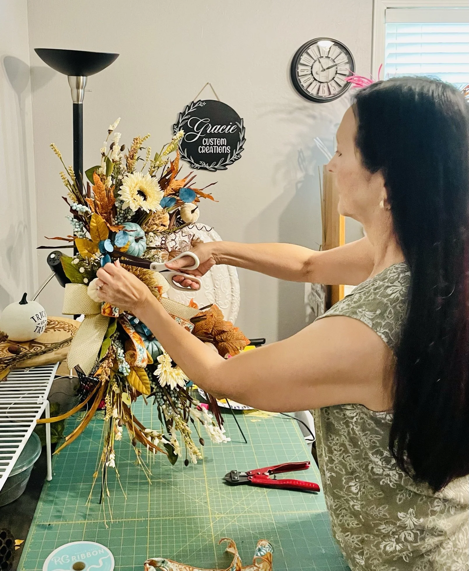 I create custom-made wreaths, floral arrangements, and home decorations using faux flowers for all seasons and occasions. I can custom-make your decoration, or you can purchase items I’ve already made. You choose specific materials and colors for customized handcrafts, and of course, I can help with that.